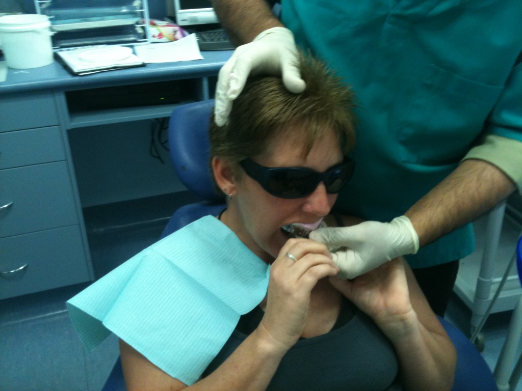 PIctures… trying to get them off my iPhone. But here’s one’s of me with the top mould in. I had some difficulty with this and pulled the tray out seconds before it was finished… and I heaved!!! I think I bit the dentist but he just chuckled and shrugged it off.